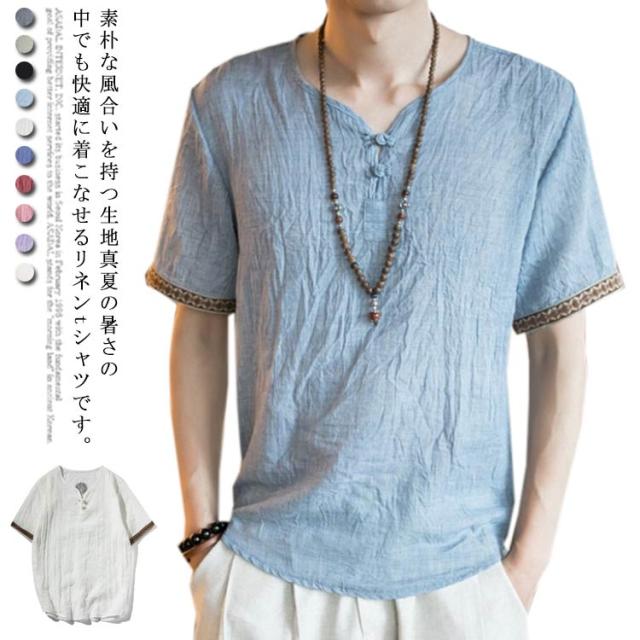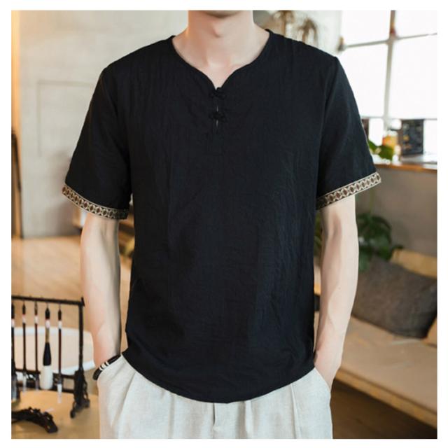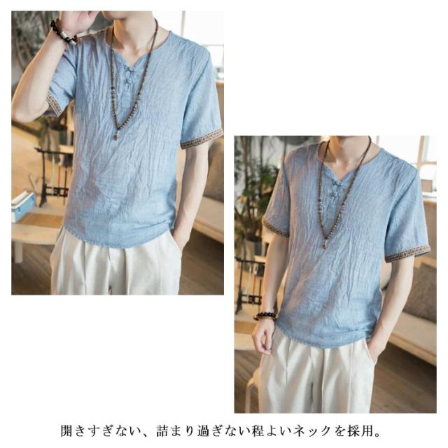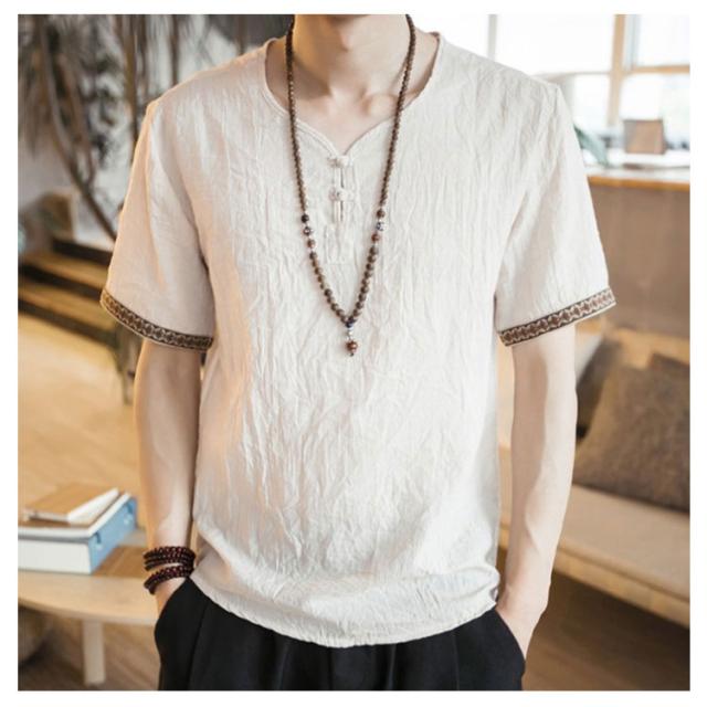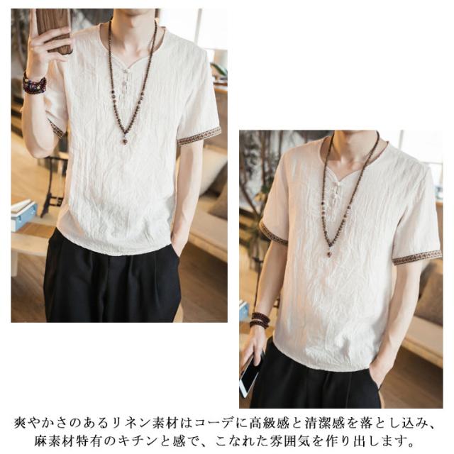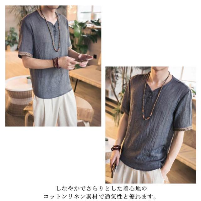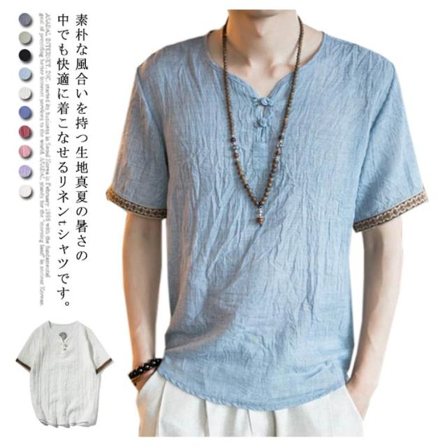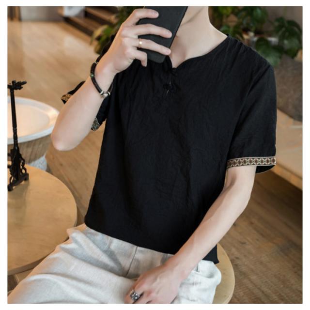 M−5XLサイズ!中華風 リネンTシャツ メンズ 綿麻 送料無料 トップス Tシャツ リネンシャツ 半袖Tシャツ 麻 麻混 リネン カジュアル 薄手 夏 秋 大きサイズ メンズファッション 刺繍