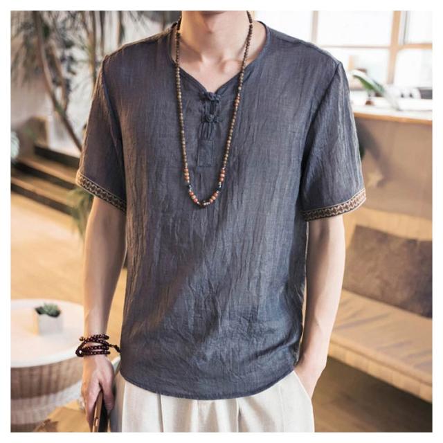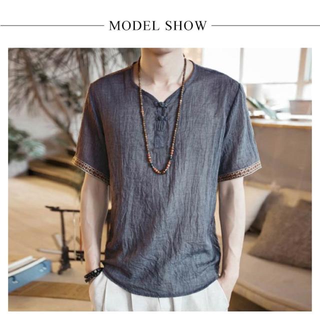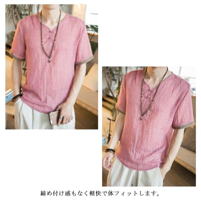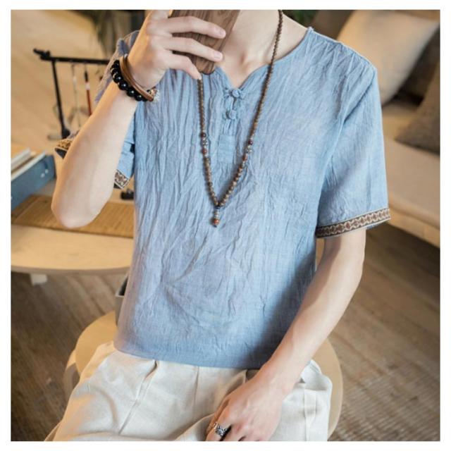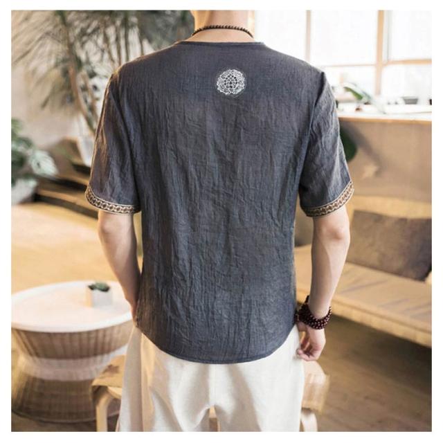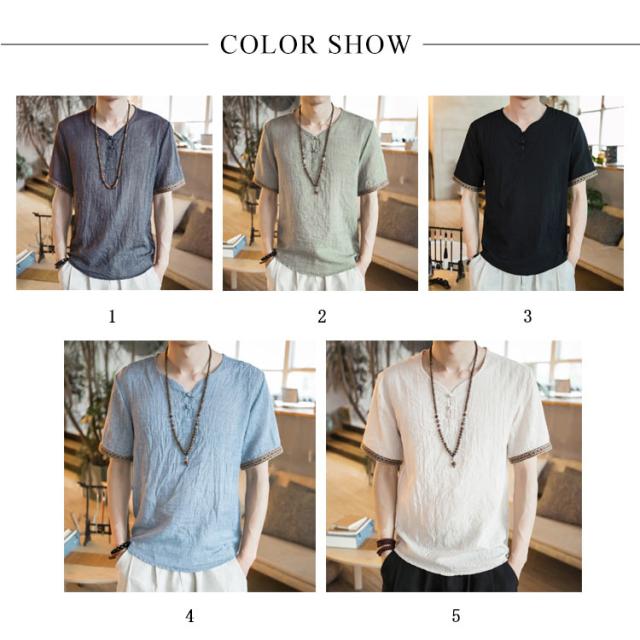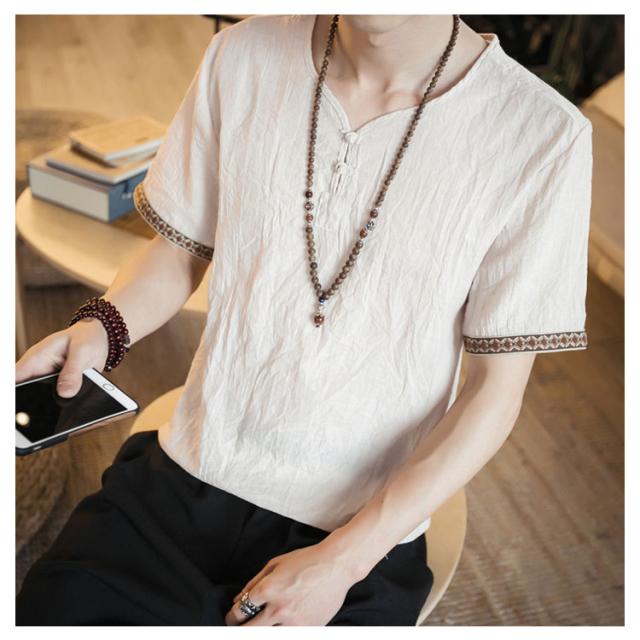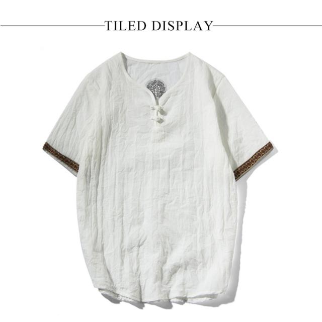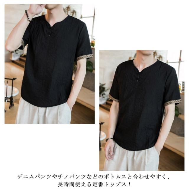 M−5XLサイズ!中華風 リネンTシャツ メンズ 綿麻 送料無料 トップス Tシャツ リネンシャツ 半袖Tシャツ 麻 麻混 リネン カジュアル 薄手 夏 秋 大きサイズ メンズファッション 刺繍