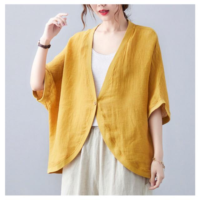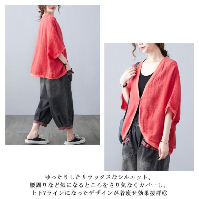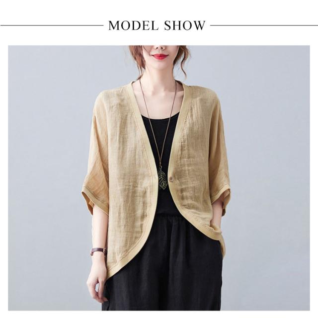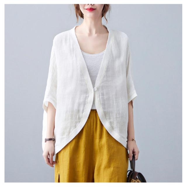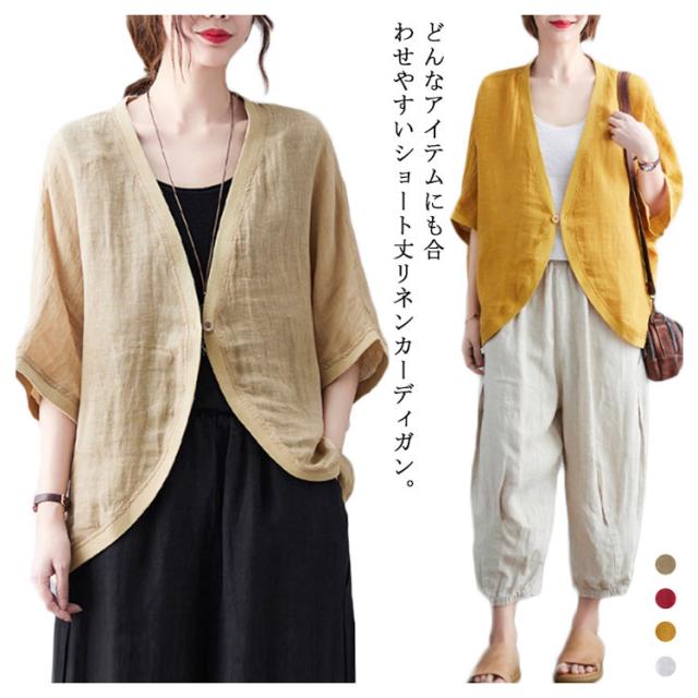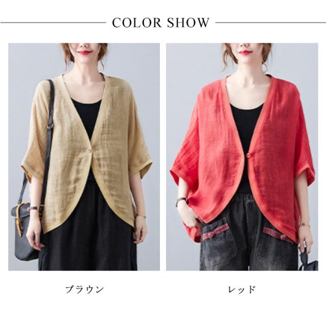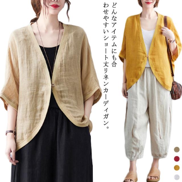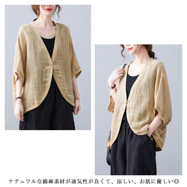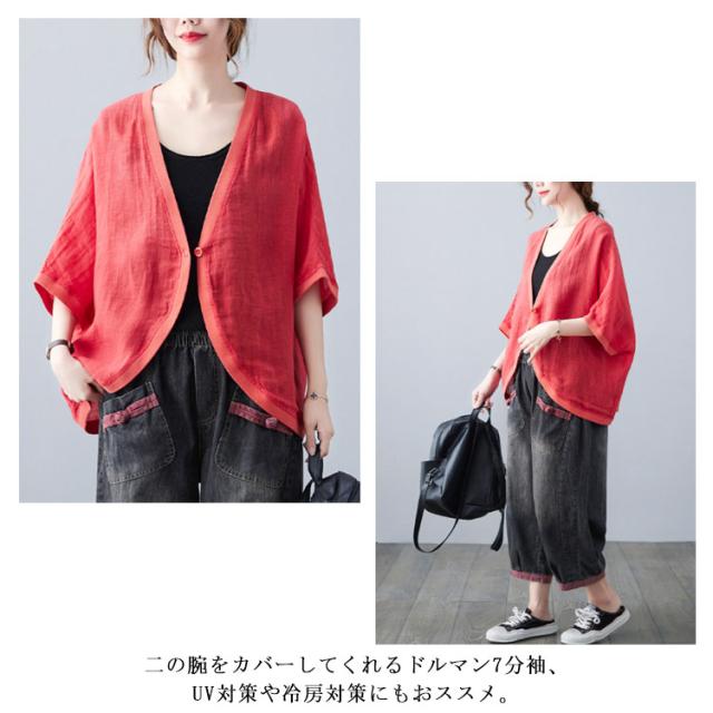 綿麻 ボレロ ショート丈 カーディガン シャツ 7分袖 送料無料 リネンボレロ ドルマンシルエット ゆったり リネン 羽織り レディース 送料無料 紫外線対策 薄手 春夏 冷房 日焼け対策 体型カバー ワンボタン 無地 ナチュラル 可愛い