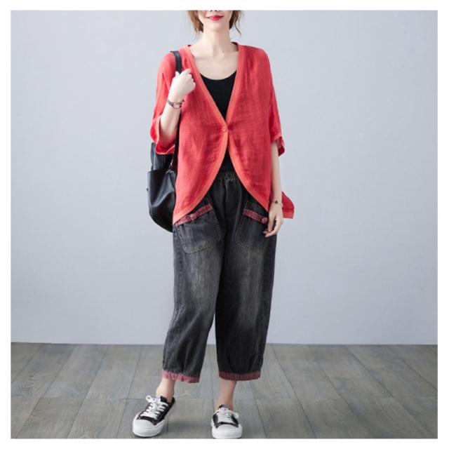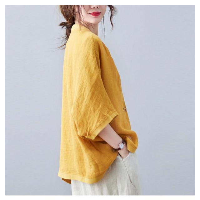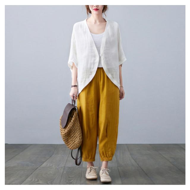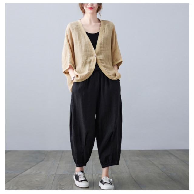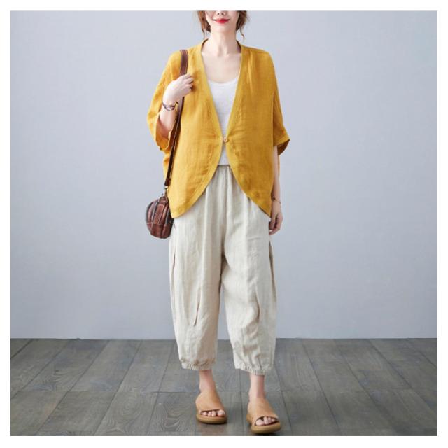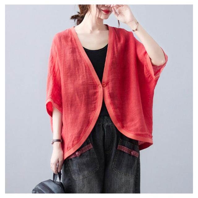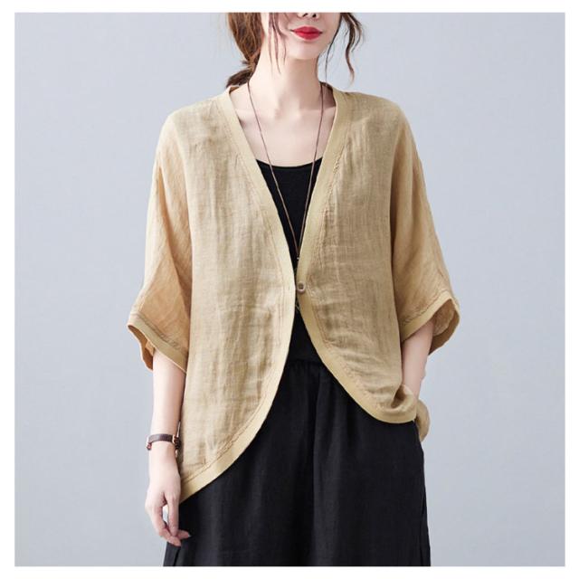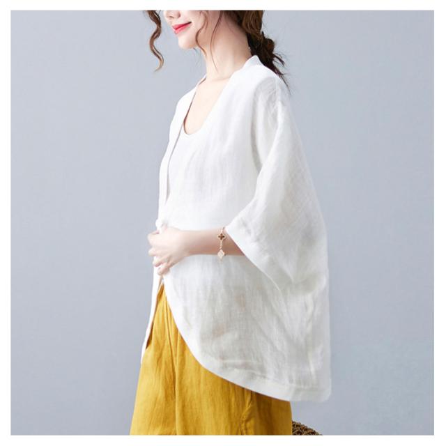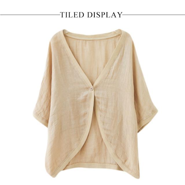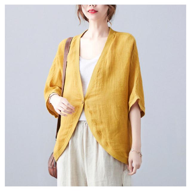 綿麻 ボレロ ショート丈 カーディガン シャツ 7分袖 送料無料 リネンボレロ ドルマンシルエット ゆったり リネン 羽織り レディース 送料無料 紫外線対策 薄手 春夏 冷房 日焼け対策 体型カバー ワンボタン 無地 ナチュラル 可愛い