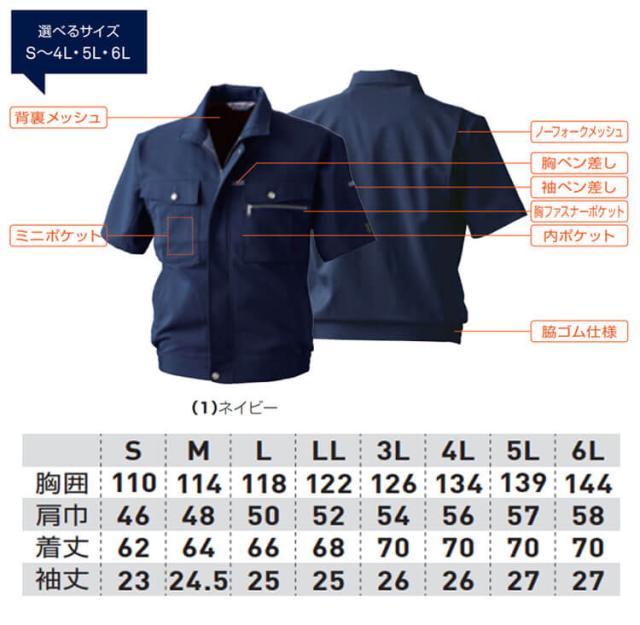 SOWA 桑和 半袖ブルゾン 921 作業服 作業着 春夏 制電性 ストレッチ 吸汗速乾 大きいサイズ5L・6L