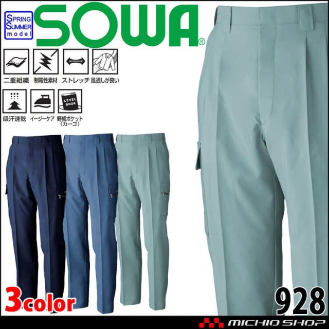 SOWA 桑和 ツータックカーゴパンツ 928 作業服 作業着 春夏 制電性 ストレッチ 吸汗速乾