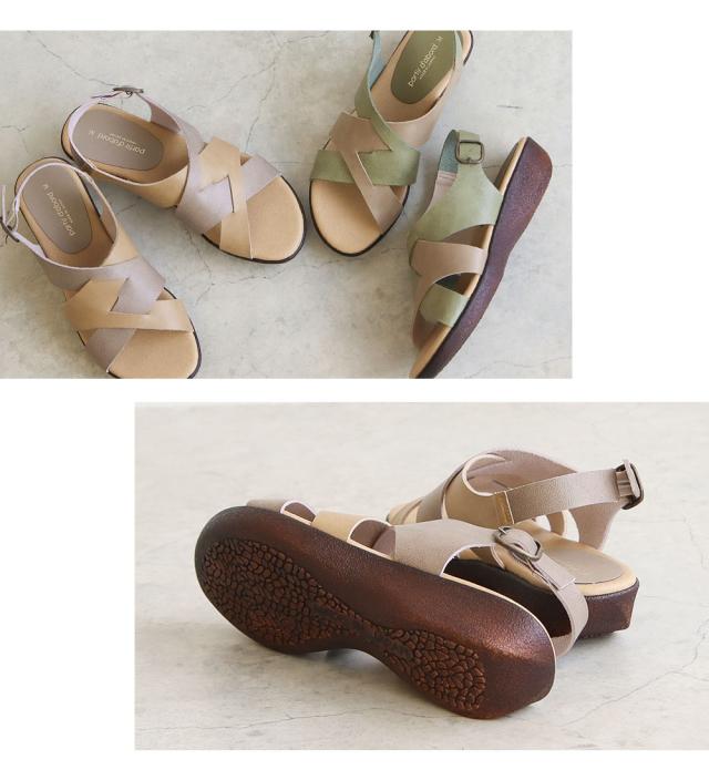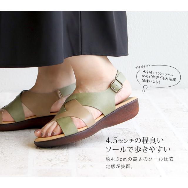 サンダル レディース 厚底 クッション 日本製 ストラップ サンダル レディース つっかけ 厚底サンダル 黒 ウェッジソール 靴 歩きやすい おしゃれ コンフォート ヒール ゴムベルト 美脚 ウエッジソール 夏 グリーン オーク 92783 partir d'abord