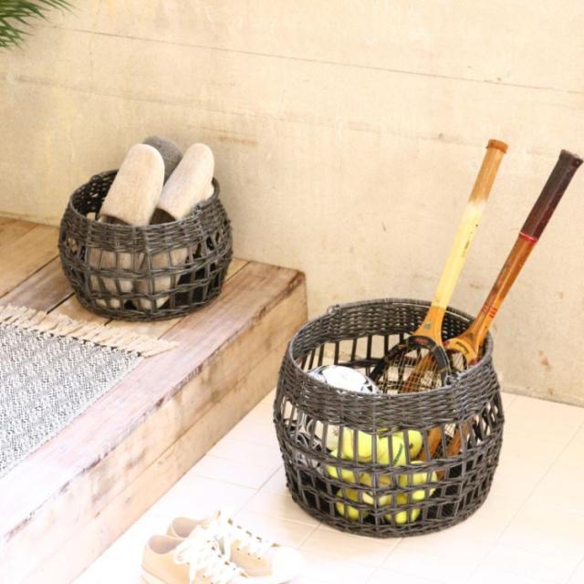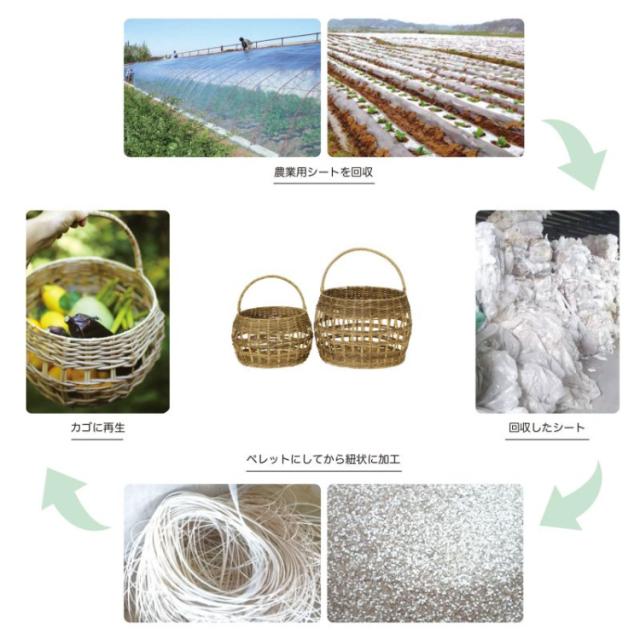 使用済みプラスティックを100%リサイクルして作られたバスケット。