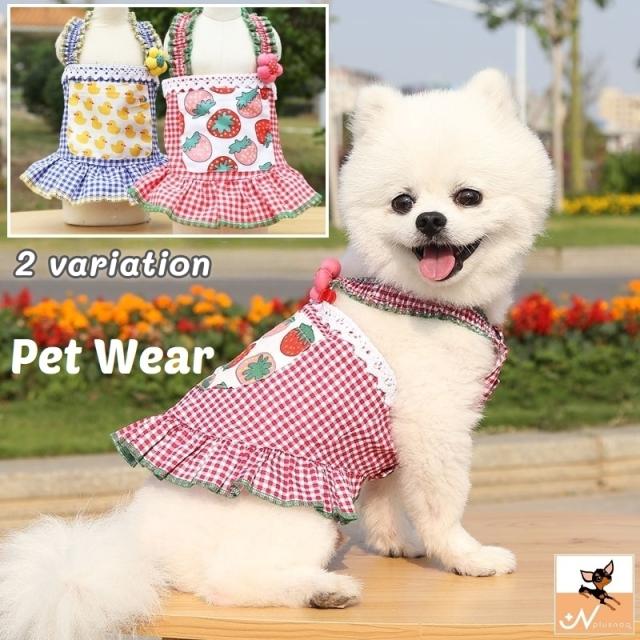 ペットウェア キャミソールワンピース 犬服 猫服 ドッグ キャット ノースリーブ 袖なし ボタン 前開き チェック柄 レース フ