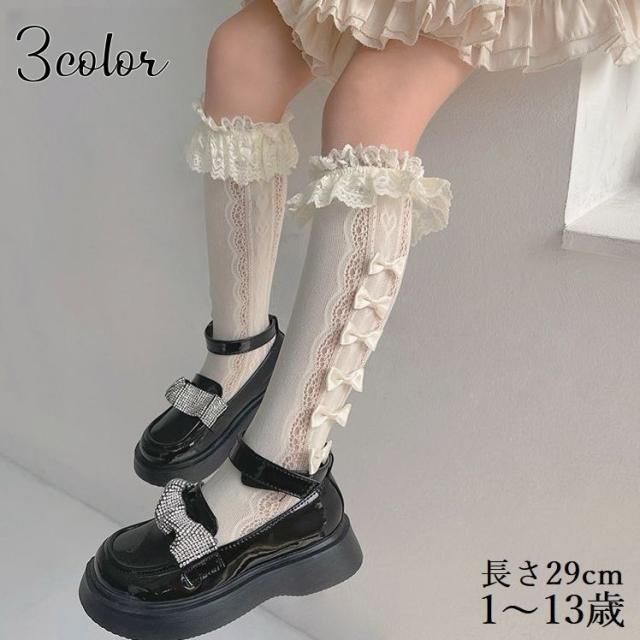 ハイソックス ニーハイ 女の子 キッズ 子供用 靴下 ロング レース リボン フリル 可愛い フォーマル 発表会 入園式 入学式