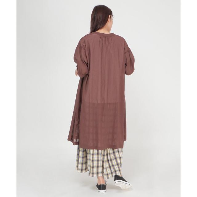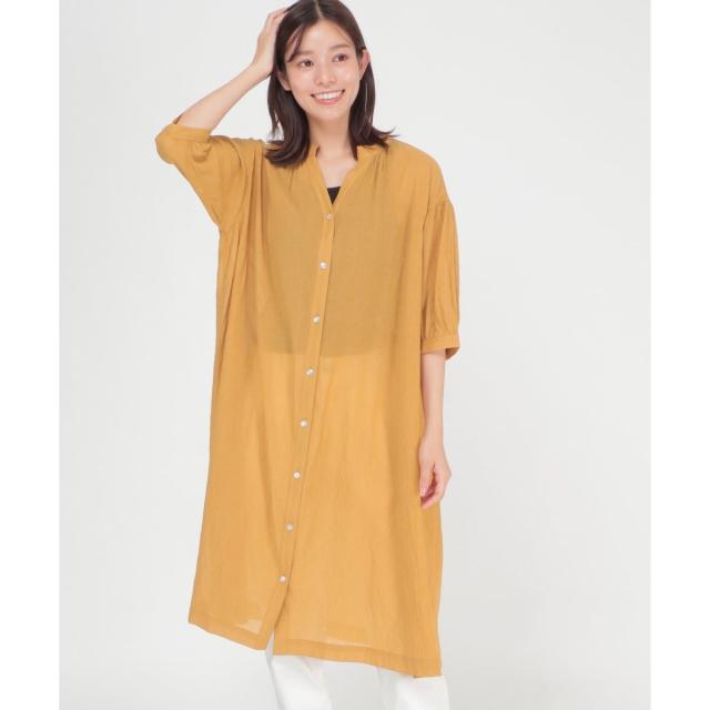 シンプルなシャツワンピをベースに、細かいギャザーを袖に施し小ワザをきかせました。