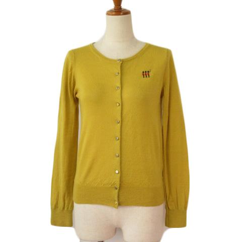 【中古】チャイルドウーマン CHILD WOMAN カーディガン ニット 刺繍 ウール F マスタード レディース