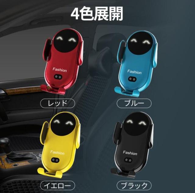 車載ホルダー ワイヤレス充電器 車 車載スマホホルダー 充電式 スマホ QI 360度 吸盤 クリップ 粘着 置くだけ充電 自動開閉