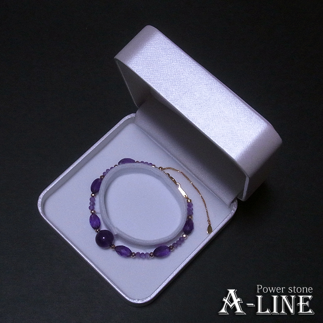 パワーストーン 高級ワイヤーブレスレット AAAアメジスト10mm&ライスカット&ボタンカット 内周約16cm 高級ケース付き ppw273