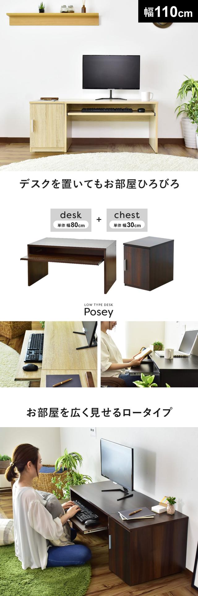パソコンデスク デスク 収納 スライド棚 サイドチェスト オフィス 在宅 ポゼ デスク&チェストセット インテリア家具 おしゃれ 北欧 big_ki プレゼント テレワーク tm