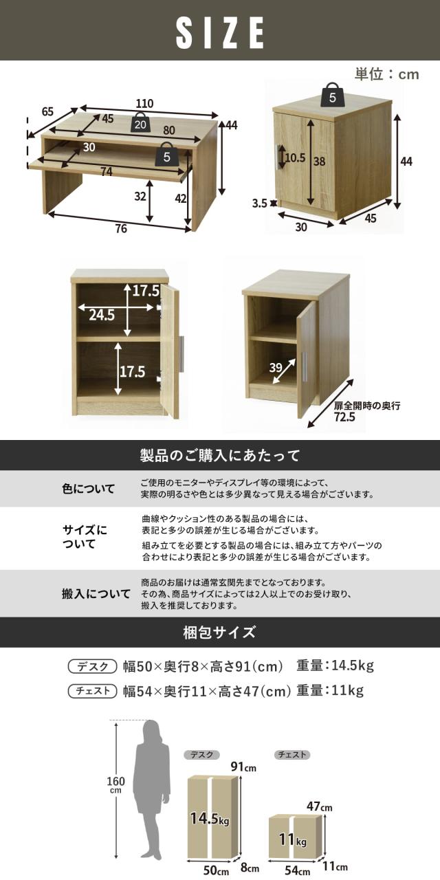 【デスク】 幅80×奥行45×高さ44(cm)【チェスト】 幅30×奥行45×高さ44(cm)