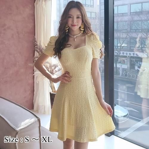 【グラシア】 キャバ ドレス キャバドレス ワンピース ミディアムドレス トレンド シンプル フェミニン フレア ふんわり 可愛い 肌見せ 魅力的 イエロー S M L XL