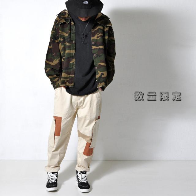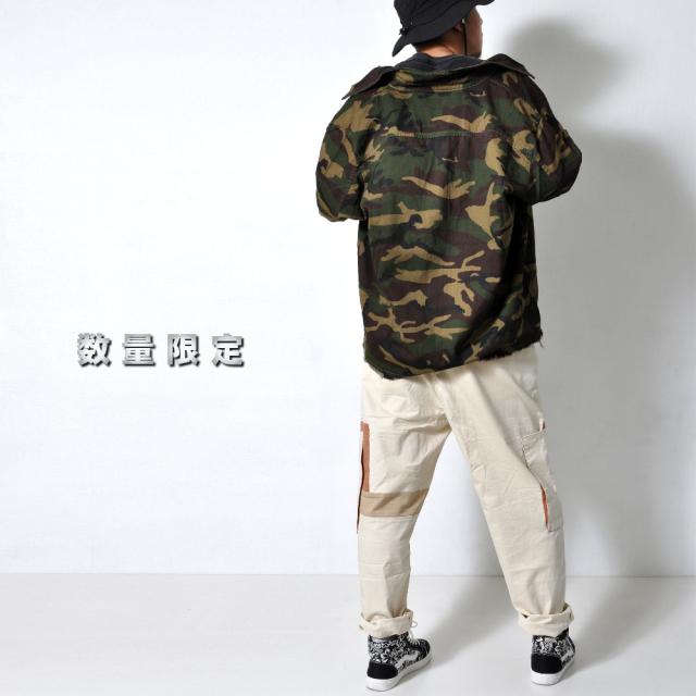 数量限定 カモフラ柄 シャツ メンズ 迷彩 ミリタリー 羽織り ボタンダウン ビッグシルエット #TS422 M便