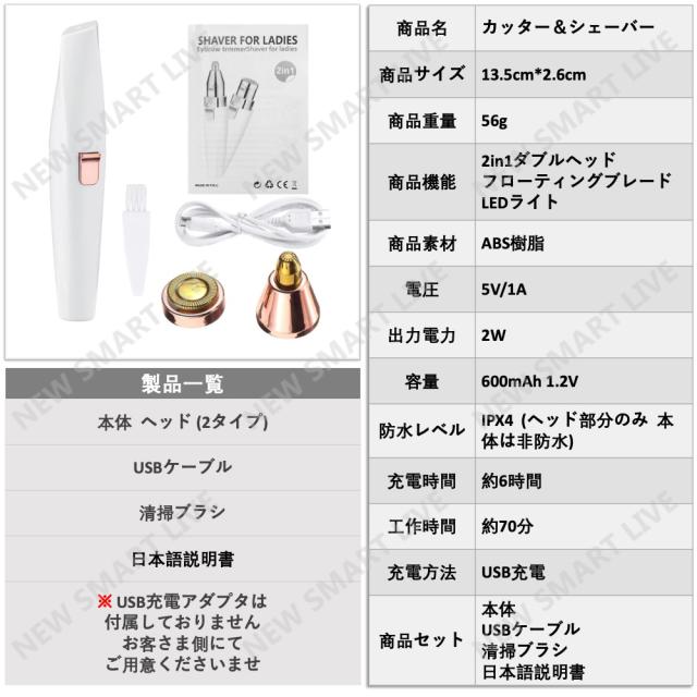 フェイスシェーバー 眉毛剃り カッター レディースシェーバー 脱毛 うぶ毛処理 ムダ毛処理 電動 USB充電 シェービング
