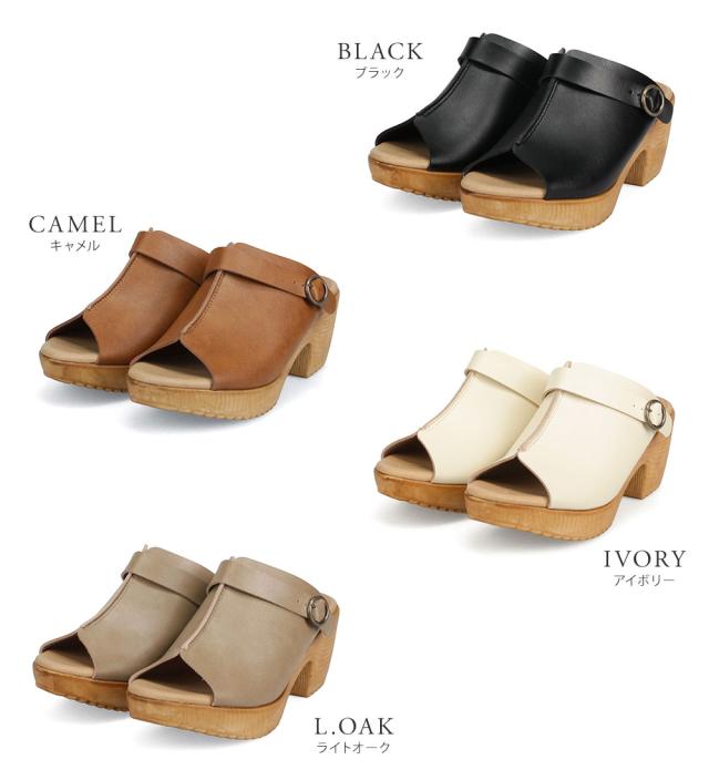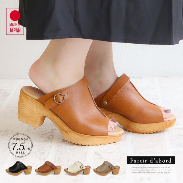 サンダル レディース 厚底 クッション 日本製 ミュール サンダル レディース つっかけ 厚底サンダル オフィスサンダル 黒 靴 歩きやすい おしゃれ コンフォート ヒール ストラップ 美脚 太ヒール 黒 アイボリー ライトオーク 92150 partir d'abord 送料無料
