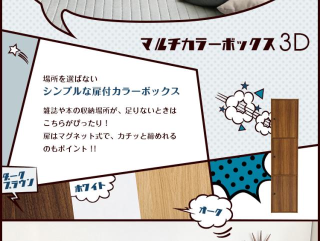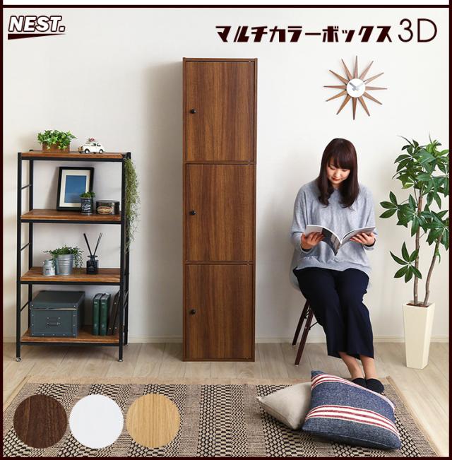 マルチ カラーボックス 3D NEST. 3ドアタイプ 収納ボックス 本棚 マグネット式 扉付き 可動棚 ラック シェルフ 本棚 収納 3段 3色対応