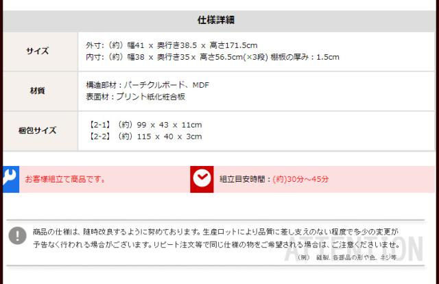 外寸:幅41cm×奥行38.5cm×高さ171.5cm