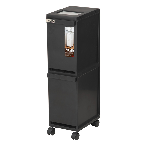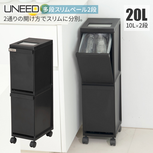 ゴミ箱 ユニード 多段スリムペール2段 20L(10L×2) ブラック | 分別 ダストボックス ごみ箱 縦型 キャスター付 2分別 隙間収納 プッシュ キッチン ペール おしゃれ 資源ごみ すき間