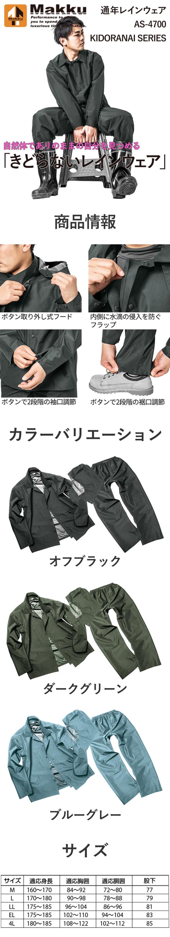 合羽 上下セット Makku マック きどらないレインウェアセットアップ AS-4700 レインウエア 合羽 カッパ