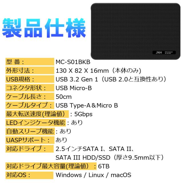 JNH製2.5インチHDD/SSDケース hddケース 2.5インチ USB3.2 Gen1 USB Micro-Bドライブケース ハードドライブエンクロージャ 1年保証 ネコポス送料無料 ポイント消化