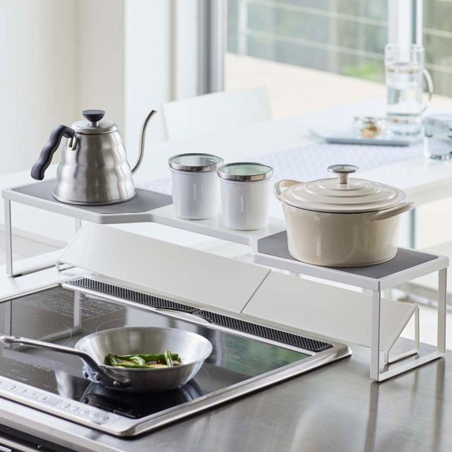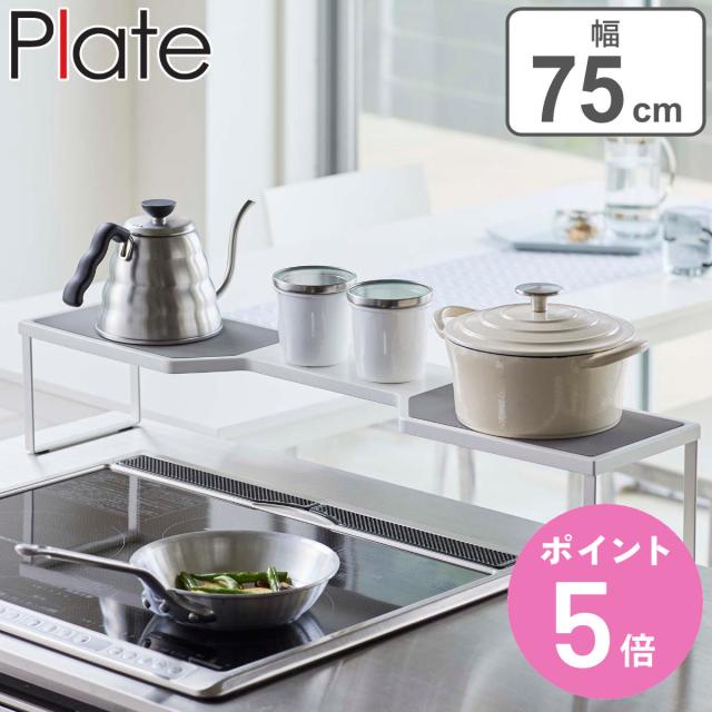 Plate コンロ奥ラック 排気口カバー上コンロ奥ラック 75cmコンロ用 ( プレート 山崎実業 コンロ ラック 隙間 コンロラック コンロ奥 75cm 省スペース コンロ周り コンロ奥収納 一時置き ちょい置き おしゃれ )