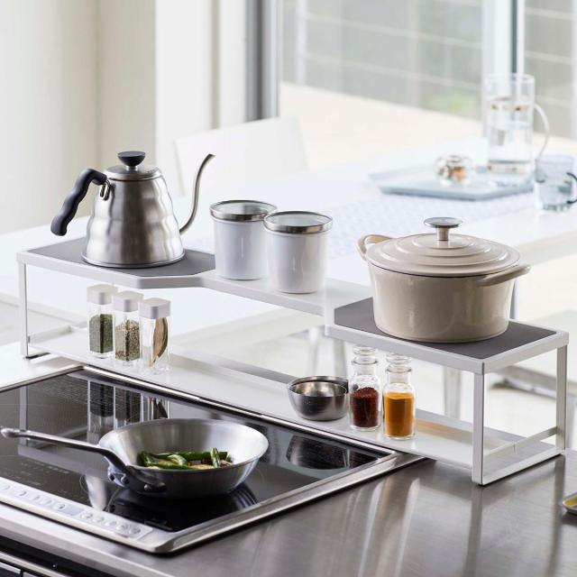 Plate コンロ奥ラック 排気口カバー付き 75cmコンロ用 ( プレート 山崎実業 コンロ ラック 隙間 コンロラック コンロ奥 カバー付き 75cm 収納 2段 排気口カバー コンロ周り コンロ奥収納 おしゃれ )