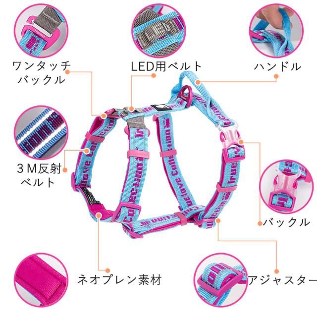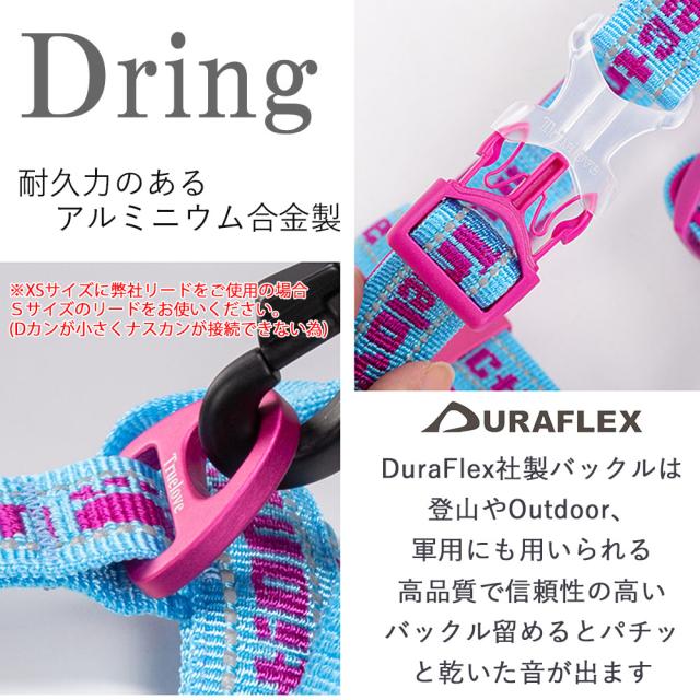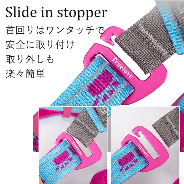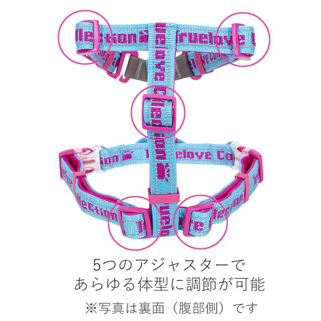計5か所のアジャスターでサイズ調節が可能で、あらゆる体型のワンちゃんに適応。