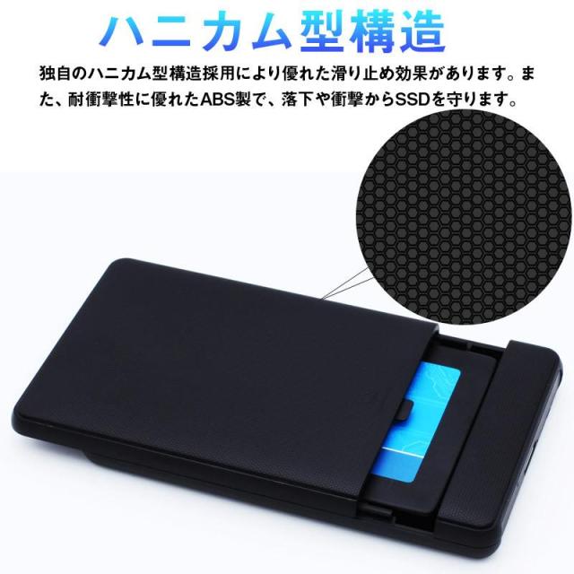 特徴:内蔵SSD(別売)をこのSSDケースに装着することで外付けHDDとして使用することが可能です。