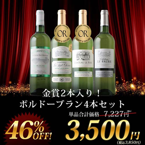 ワインセット 白ワイン 金賞2本入り!ボルドーブラン4本セット