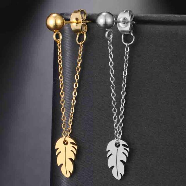 ボールとキャッチをチェーンでつなげチェーンにインディアンジュエリーでも人気の鷲の羽根のチャームを通したステンレス製のジャケットピアス。