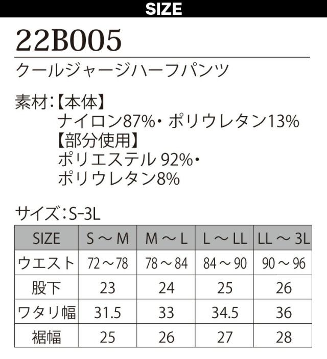 Dinnovation ディノベーション クールジャージハーフパンツ 22B005 作業着 作業服 春夏 メンズ 接触冷感