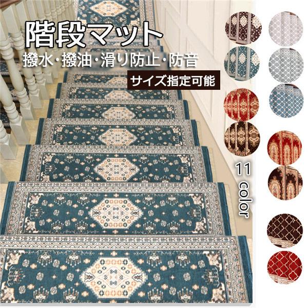 滑り止めマット 吸着階段マット ペット 5枚 階段マット 欧風 厚手 折り曲げ 防音 おくだけ吸着 足冷え 防音対策 水洗い サイズ指定可