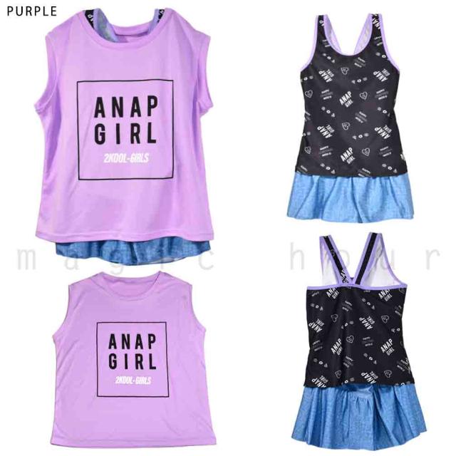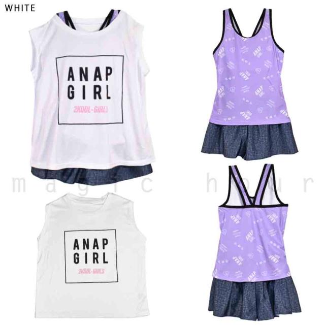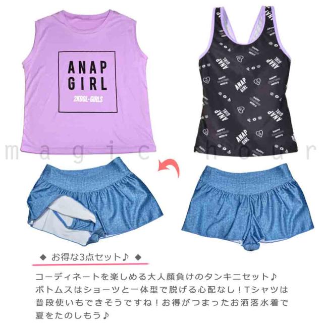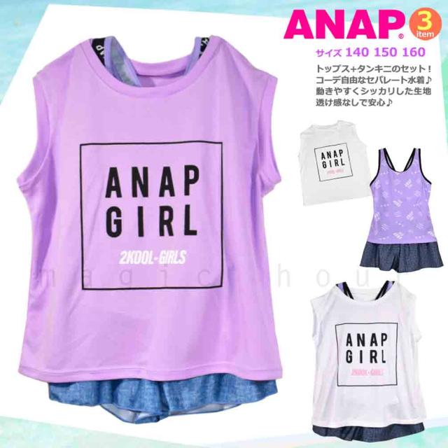水着 子供 女の子 タンキニ ガールズ スイムウェア ANAP アナップ T付き 3点 セット ジュニア ブランド お洒落 かわいい 140cm 150cm 160cm 白 ピンク パープル