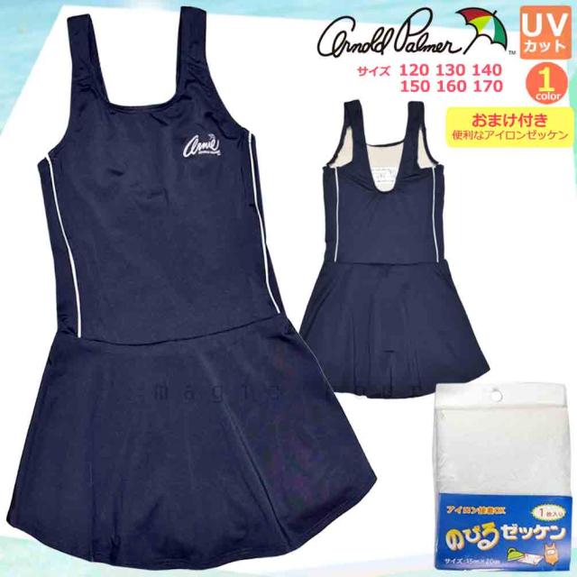 ◆ アーノルドパーマー キッズ ジュニア スクール水着 女子 女の子 スカート付 ワンピースタイプ 定番 子供 無地 スイムウェア ◆