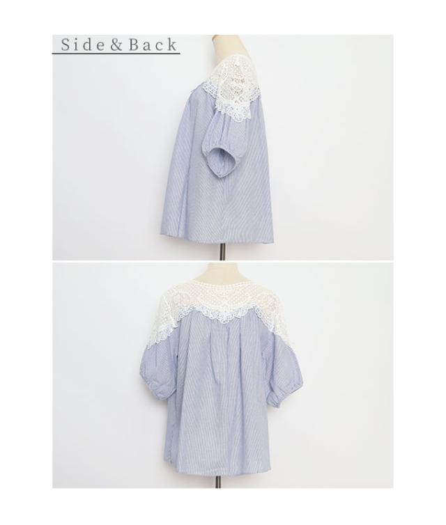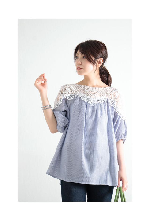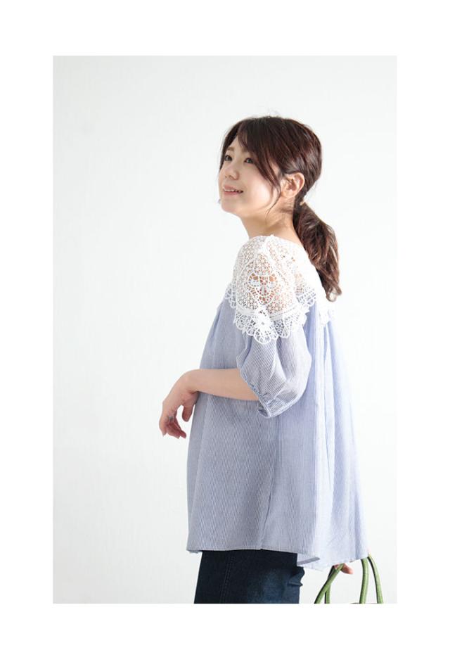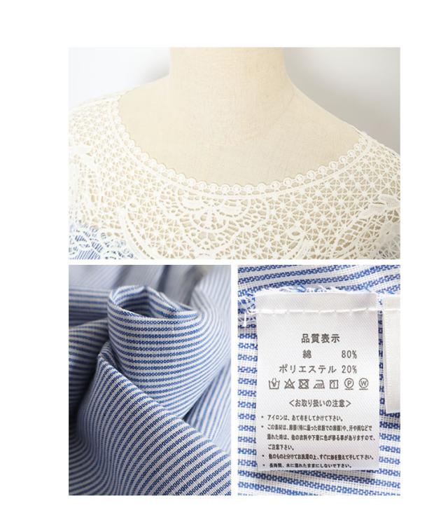 商品名: 花レースのストライプ柄シャツブラウス