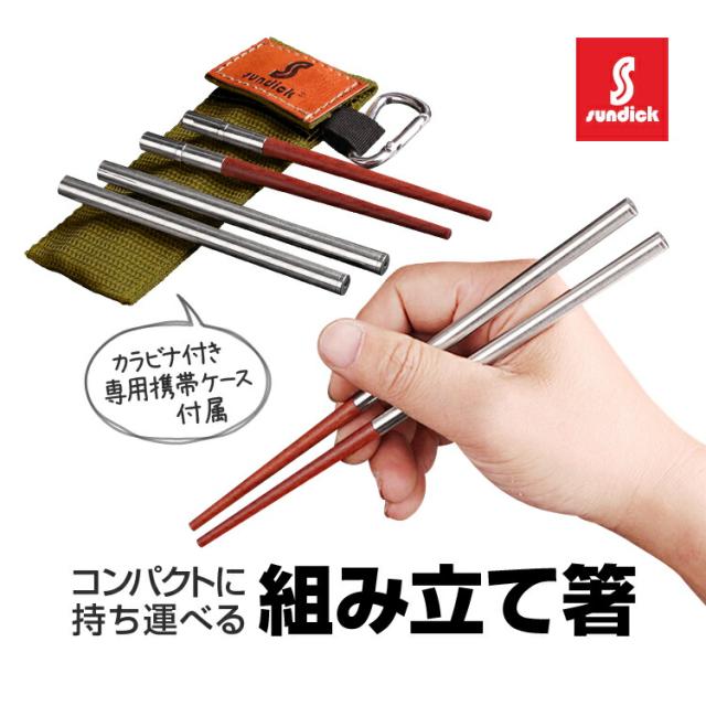 組み立て式箸 天然木+ステンレス SUNDICK カラビナ付き携帯ケース マイ箸 SDKSTH207