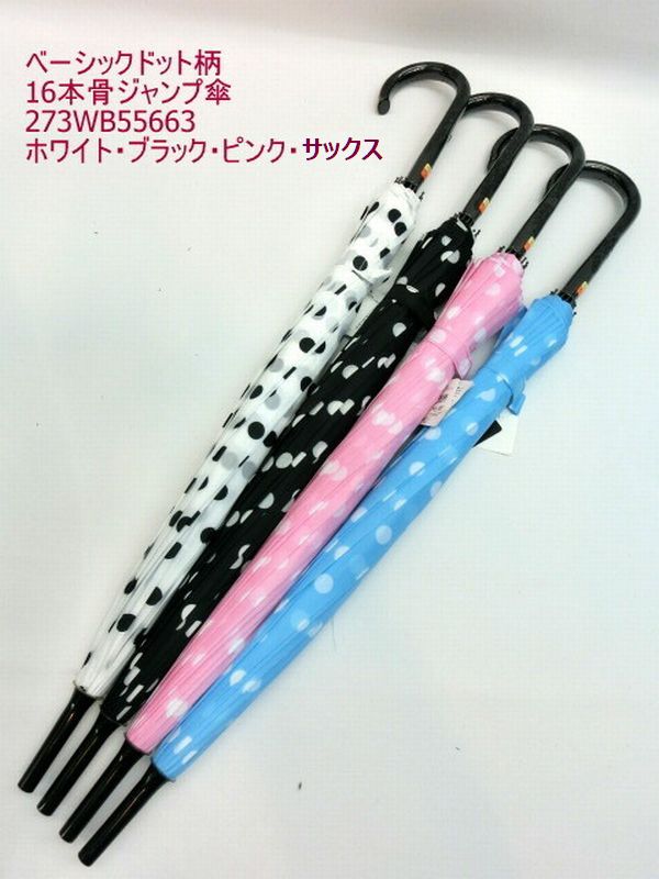 雨傘 傘 ファッション小物 レディースファッション 長傘 婦人 ベーシックドット柄 16本骨 ジャンプ傘 ベーシック ドット柄 ジャンプ 【送料無料】