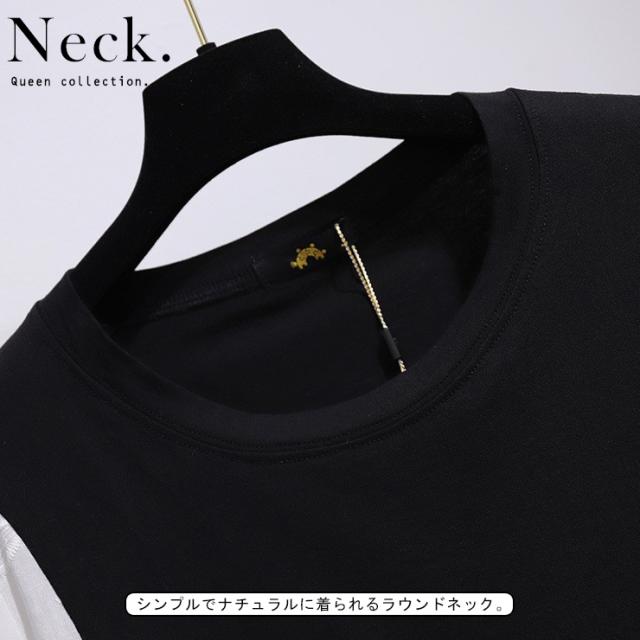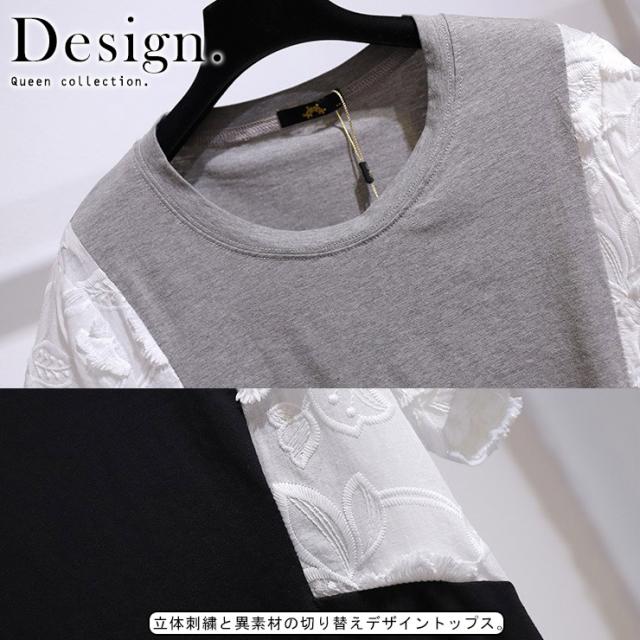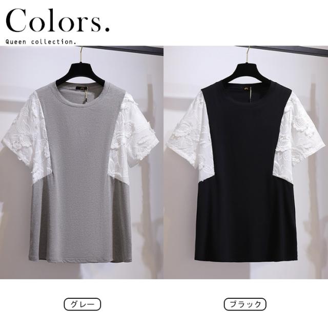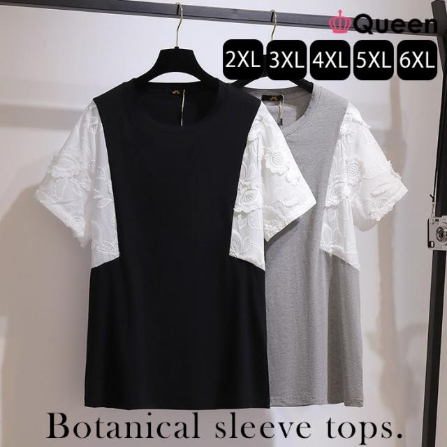 ★☆大きいサイズ レディース 異素材Tシャツ カットソー 袖切り替え 花柄 無地 夏 3L 4L 5L 6L 7L ブラック グレー 新入荷 メール便可☆★