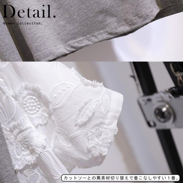 大きいサイズ レディース 異素材Tシャツ カットソー 袖切り替え 花柄 無地 夏 3L 4L 5L 6L 7L (62317)