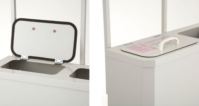 薄型で省スペースに設置できる紙オムツ用ダストボックスです。商業施設のベビールームや多目的トイレに最適です。