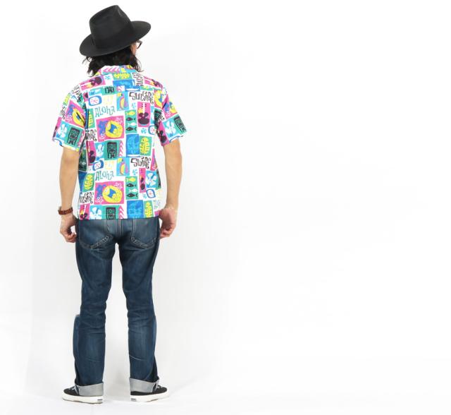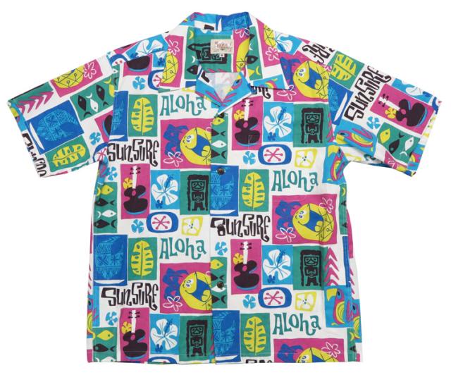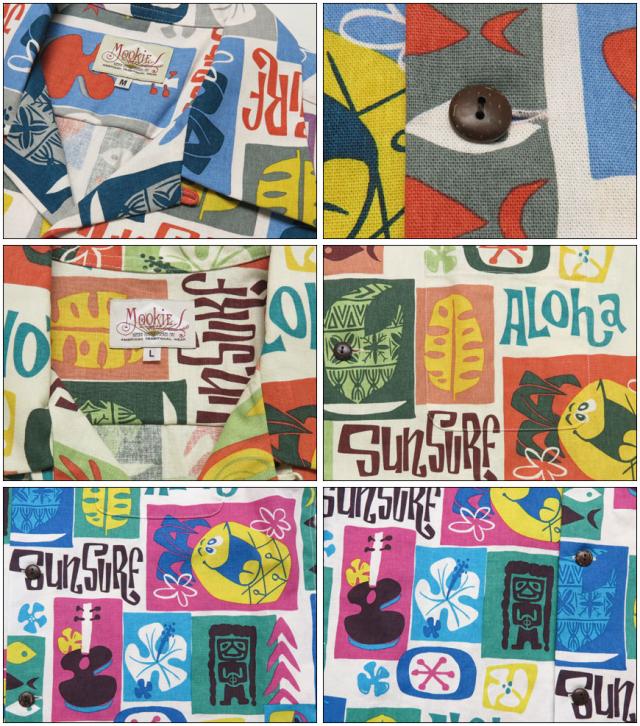 ミッドセンチュリー・ティキモダンのスタイルを得意とし、世界各国で活躍するアーティスト、Mookie Sato(ムーキー・サトウ)。彼の得意とするタッチを生かし、ハワイにおけるミッドセンチュリーな世界観をテキスタイルに表現した。素材は着心地の良いシアサッカー生地。モチーフは「当時のハワイの広告デザイン」をイメージして構成されている。ポリネシアン・カルチャーとアメリカン・ポップカルチャーが融合したデザインを楽しんで欲しい。