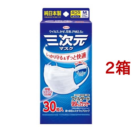 三次元マスク ふつう Mサイズ ホワイト(30枚入*2箱セット)[不織布マスク]