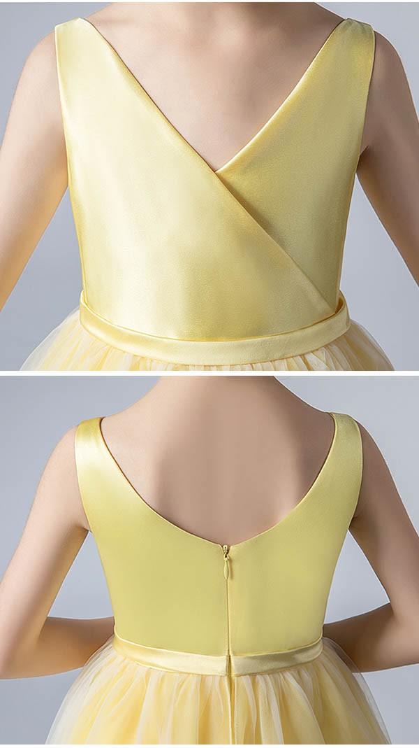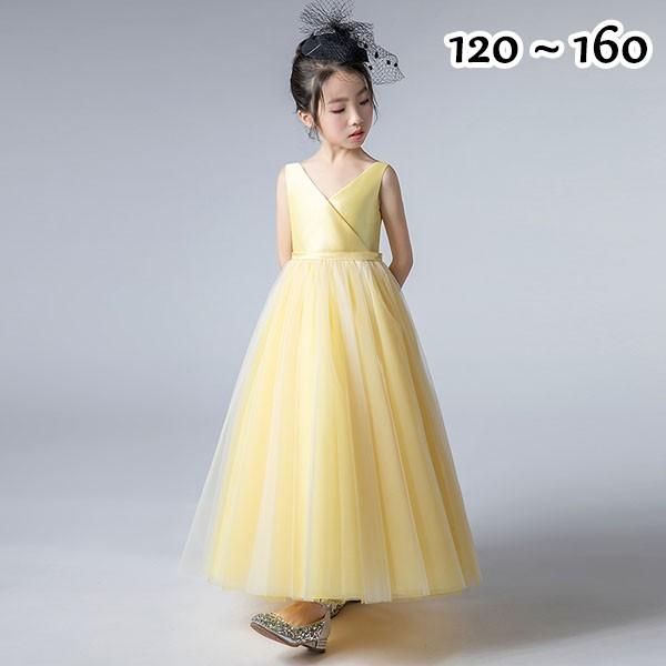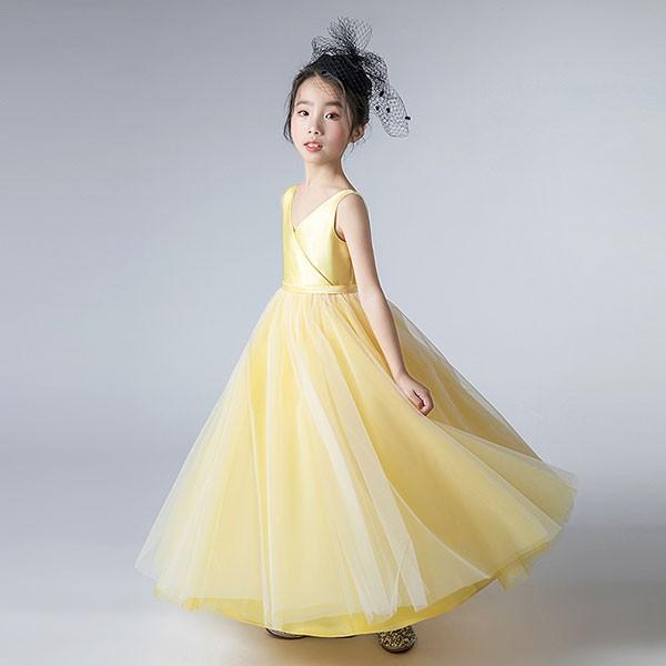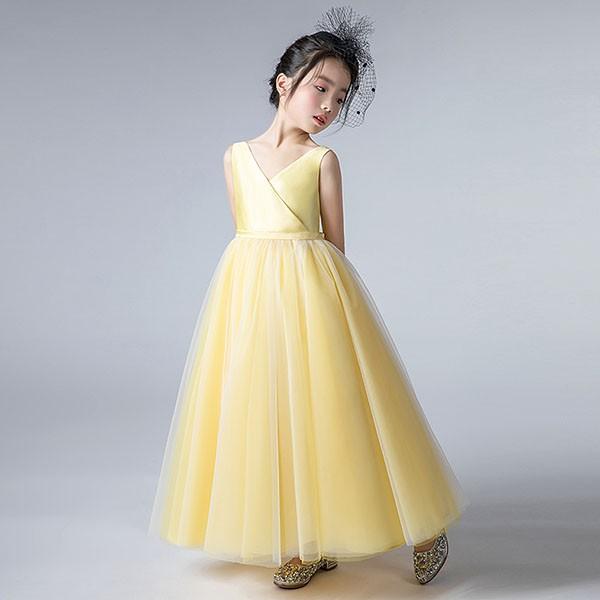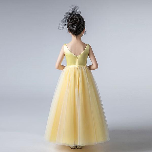 ピアノ発表会 中学生 ワンピース ドレス 女の子 ノースリーブ ロングドレス 子供 パーティードレス 発表会 子ども 結婚式 七五三 ピアノ キッズドレス プリンセス お姫様 フラワーガール ベールガール リングガール 黄色 da155n1n1l9
