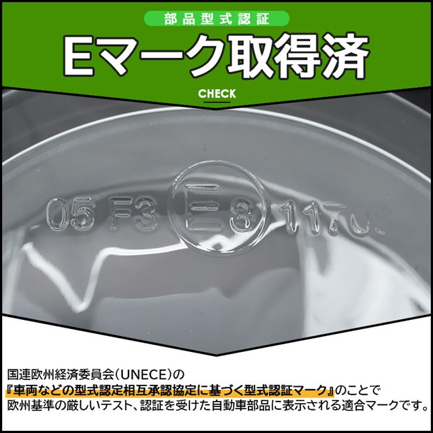 上記の性能で欧州基準の厳しいテストをクリアし、認証を受けた自動車部品に表示するEマーク認証を取得済みです。