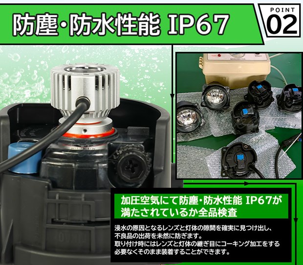 防塵・防水性能IP67を満たし、製造工場にて加圧空気検査を全品実施しています。