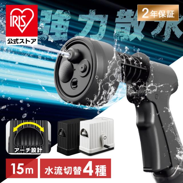 ホースリール 15m 散水 洗車 JETアクアガン 強力散水 パワフルジェット 水流4種 ホース 内径12mm アーチ型設計 巻き取り スムーズ 掃除 庭 園芸 ガーデン ガーデニング 散水ホース 水やり 水撒きホース 水道ホースリール アイリスオーヤマ FHEXJ-15 * 送料無料