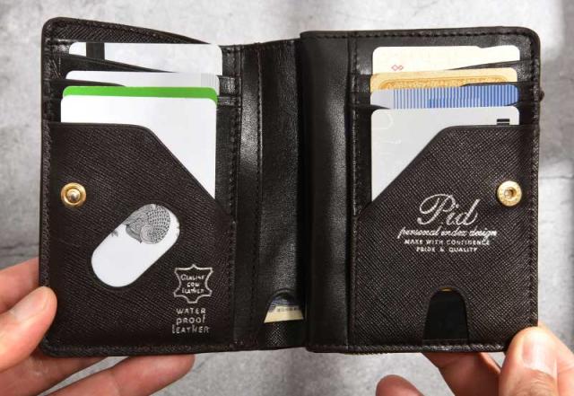 Pid 防水牛革 二つ折り財布 ミドルサイズ ecrire 本革 レザー 小銭入れあり カードがたくさん入る おしゃれ 大人 シンプル