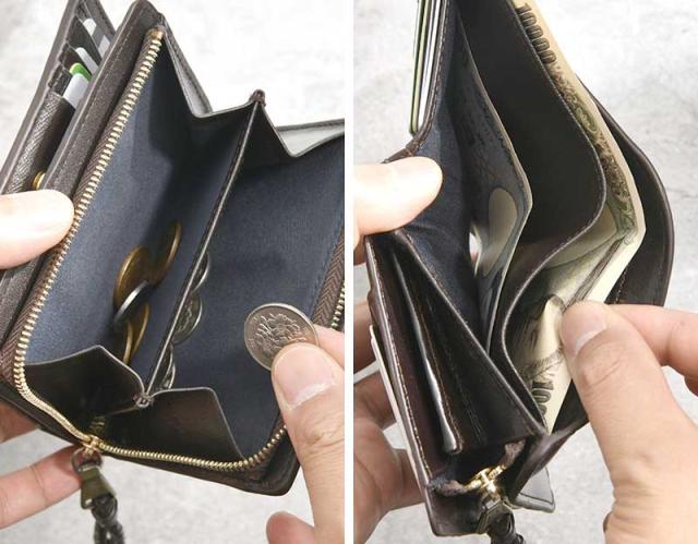 雨の日やアウトドアでも安心 撥水レザーを使用した二つ折り財布