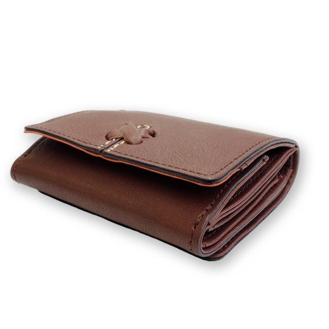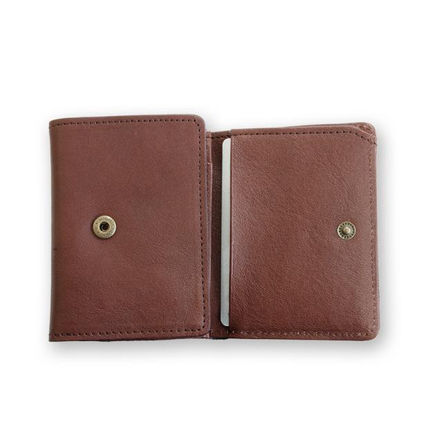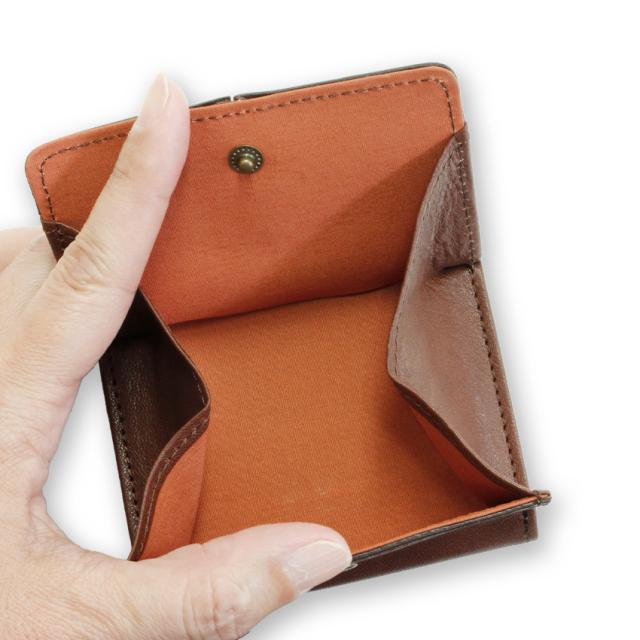 ミニバッグやポシェット、旅行用にもおすすめ、『 お札、コイン、必要なカード類』がしっかりとミニマムに収まる手のひらサイズのコンパクトな三つ折り財布です。